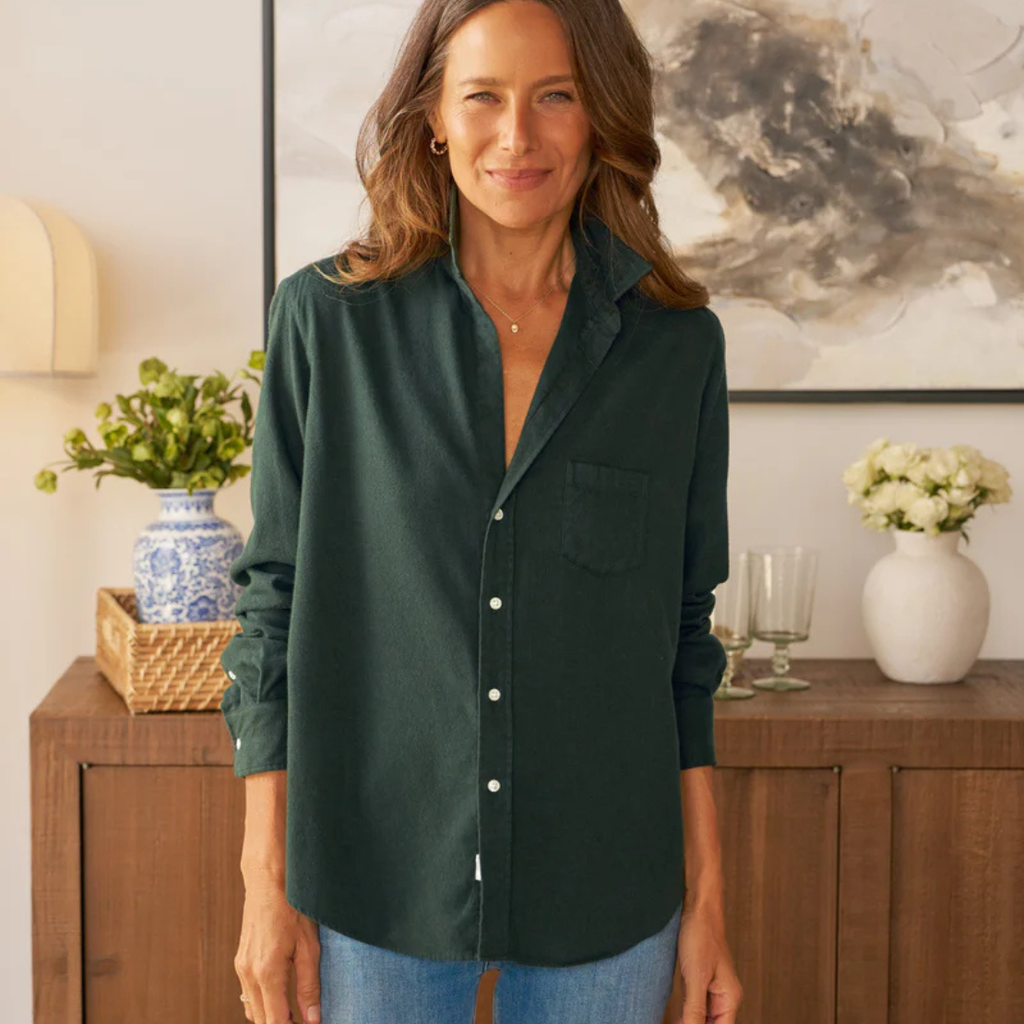 Frank & Eileen is a certified B-corp and woman-owned company with a 100% female leadership team. Second only to Patagonia in terms of their B-corp sustainability ranking, the brand was founded by Audrey McLoughlin in 2009. Frank & Eileen partners exclusively with ethical and sustainable manufacturers to craft pieces using the finest raw materials found in nature. 100% of their fabrics can be traced back to the farms where they were grown in Italy.