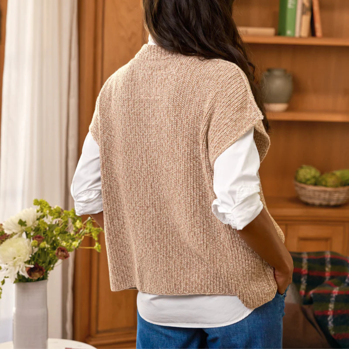 - Iconic pullover sweater vest with an exaggerated crew neckline