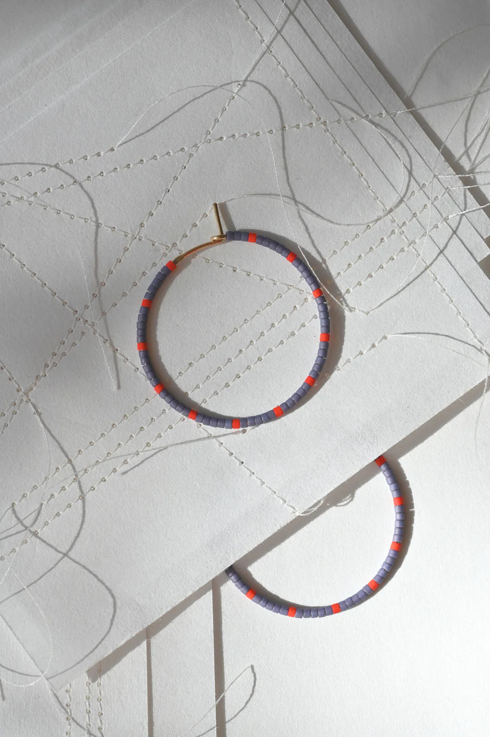- Materials – Japanese glass seed beads, hand-hammered 14k gold-filled wire hoops