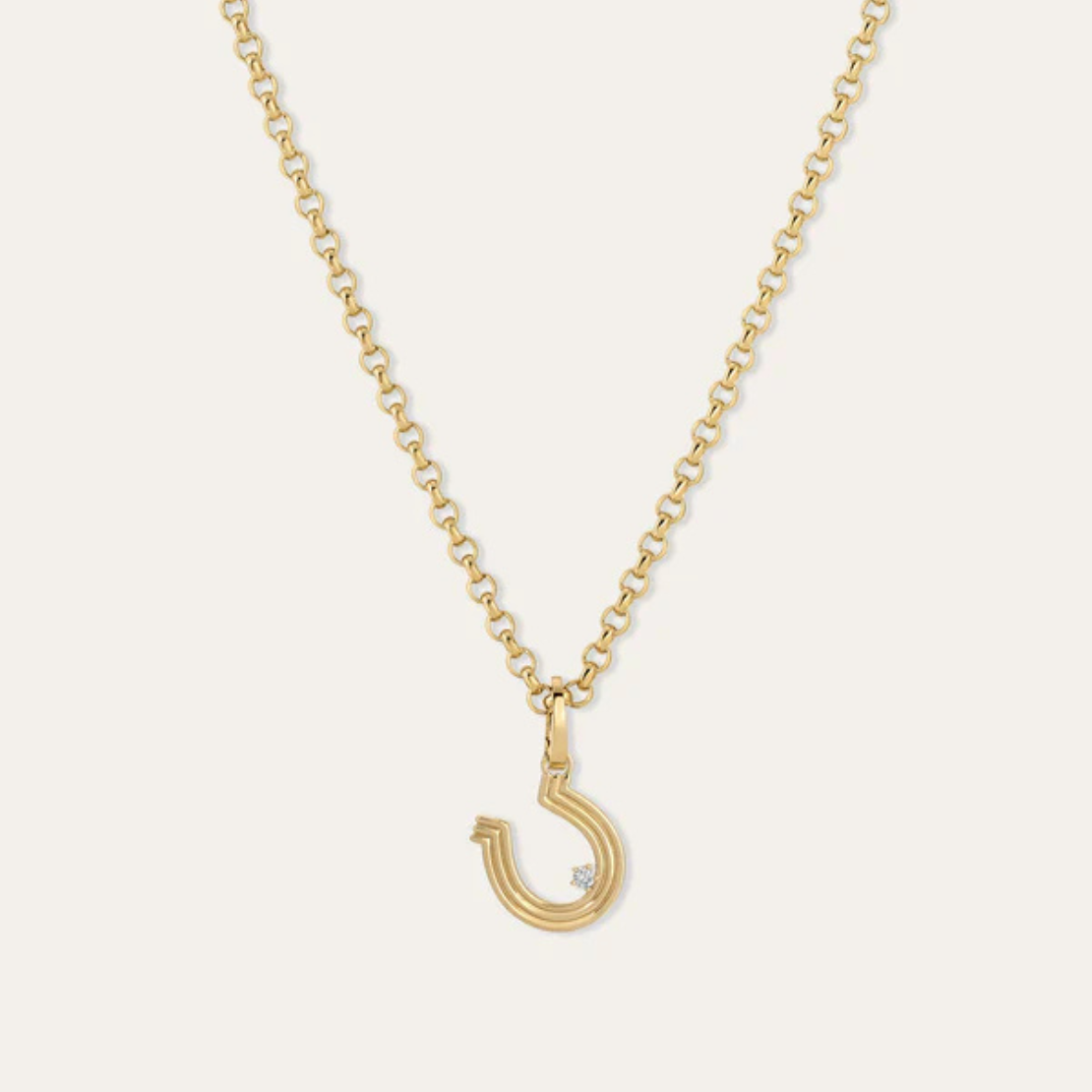 Our signature symbol of luck, now in our iconic Groovy style. Handcrafted in 14k yellow gold with a bezel-set natural diamond, this charm features our dimensional fluting detail and modern silhouette. Inspired by Adina’s love of good luck talisman. We love it paired with our 4mm Groovy Italian Chain Initial Necklace at 16 inches.