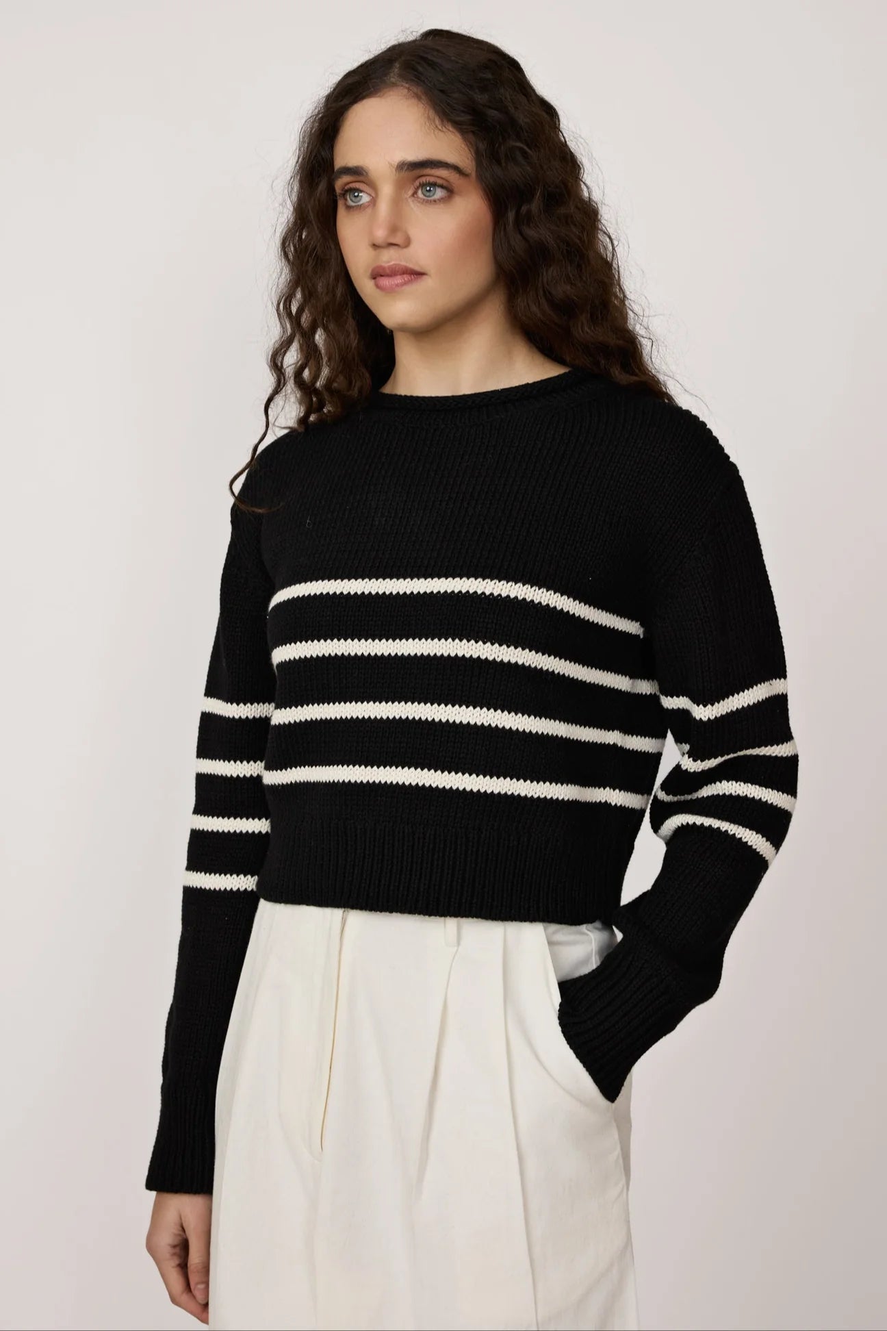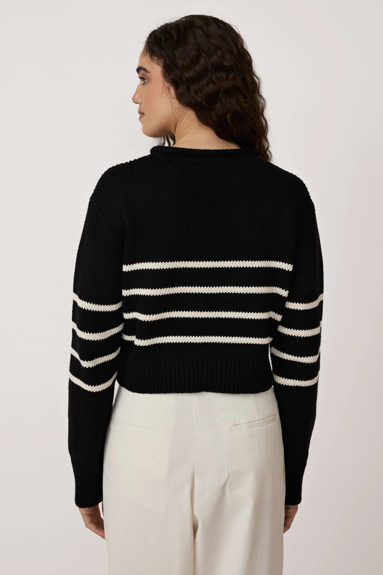 The Field Sweater, now crafted in luxurious 100% cotton, is a customer favorite. This bestselling style features a cropped silhouette, a cozy roll-neck, a chunky weight, and classic striped detailing, making it perfect for effortless, year-round wear.