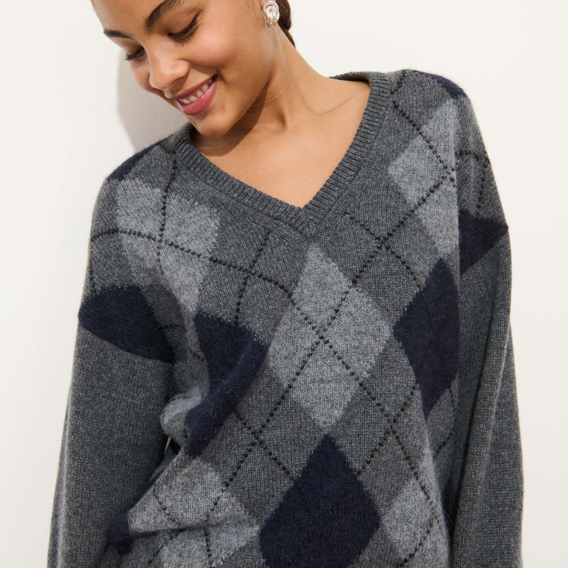 Alex Mill History Lesson: Argyle dates back to 1798. So safe to say it's not going anywhere anytime soon. Details we love: Super soft wool blend, V-neck. Design notes: “Inspired by a vintage piece we found at one of my favorite vintage shops in Brooklyn. Can’t go wrong with a classic argyle.” - Alice, Women’s Designer