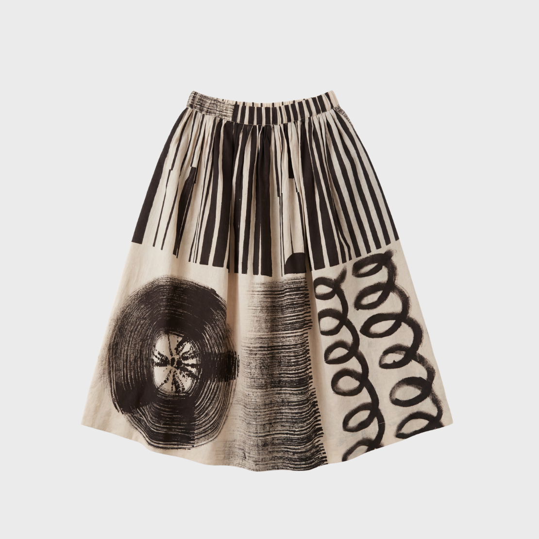 A full, gathered midi skirt with an elasticated waistband for a comfortable, flexible fit. Designed with generous volume and fluid movement through the hem.