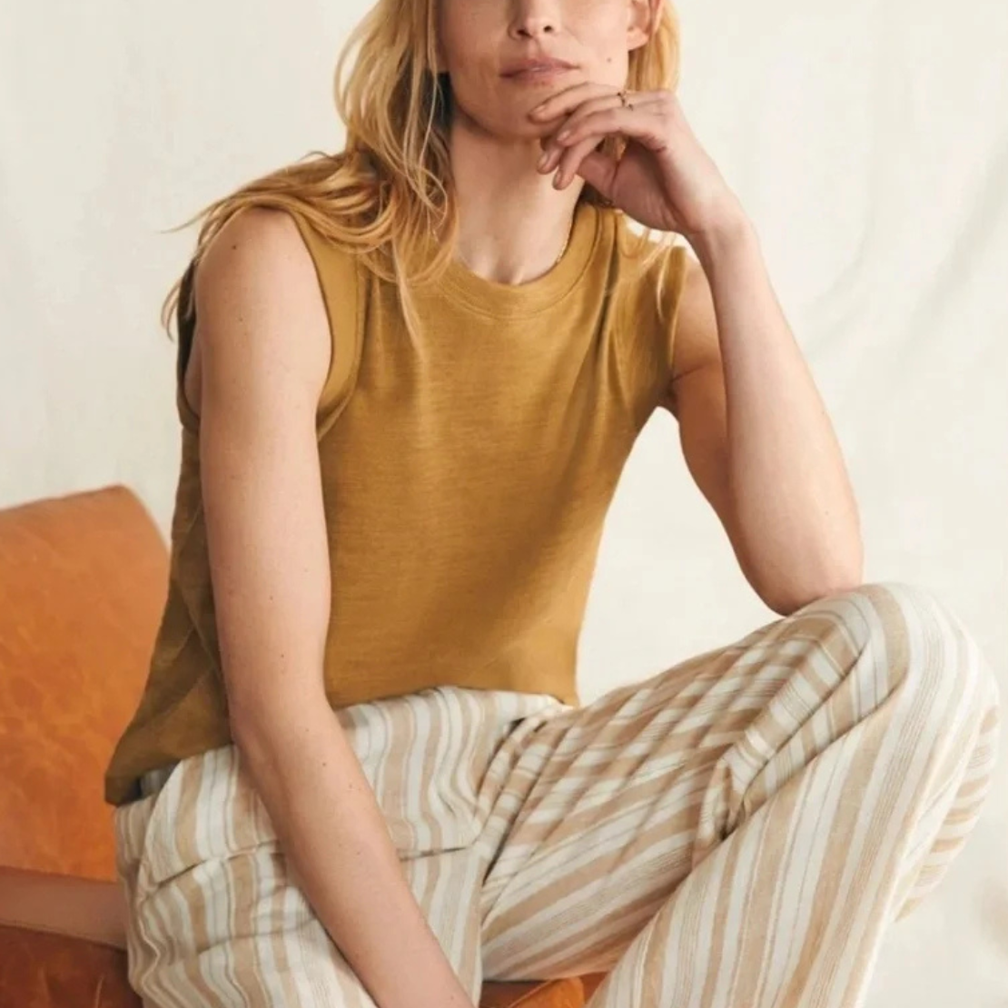 We consider the muscle tank one of summer's essential tops. In our perfectly faded Sunwashed treatment, it strikes a nonchalant and lived-in cool that never goes out of style. The slightly cropped and breezy fit pairs perfectly with any summer short or skirt.