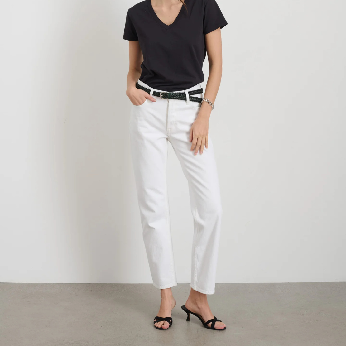 If you're into the quintessential vintage jean: straight-leg, mid-rise, these are the ones! These jeans were made to hug your hips. They’ll feel a little snug at first, but the cotton denim will relax with wear. Between sizes or want an easier fit? Size up.