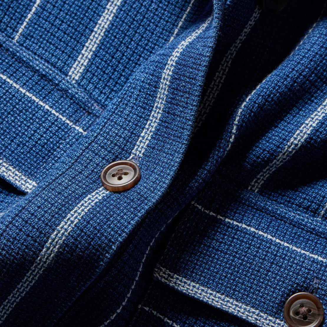 Crafted from 100% organic cotton, this woven fabric features a textured surface that resembles a knit, offering structure with an easy, natural drape. Indigo-dyed to reveal rich highs and lows, the fabric develops depth and character over time, with each piece softening and fading naturally over time.