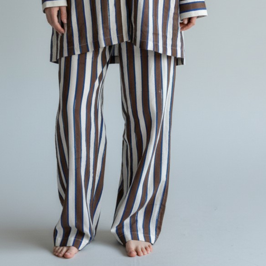 Crafted from hand block printed cotton, chosen for its breathable, lightweight feel and bold vertical stripe pattern. Printed using azo-free dyes, making it gentle on the skin and environmentally conscious.