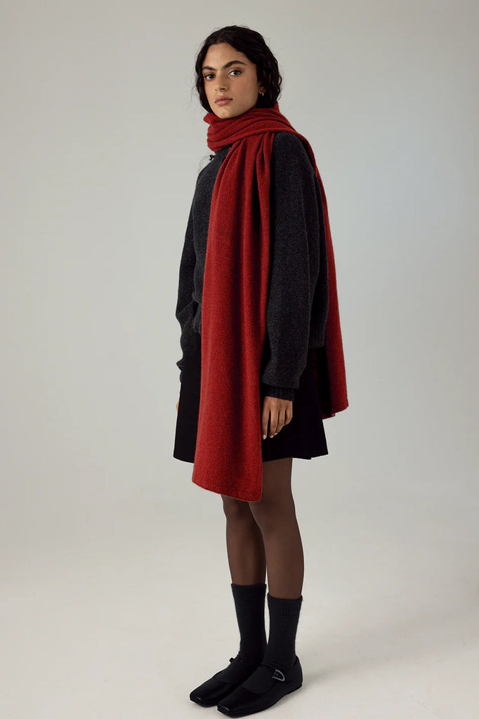A luxuriously soft blend of natural fibres. This generously sized scarf is also large enough to be worn as a wrap. Ethically knitted in Auckland, New Zealand.