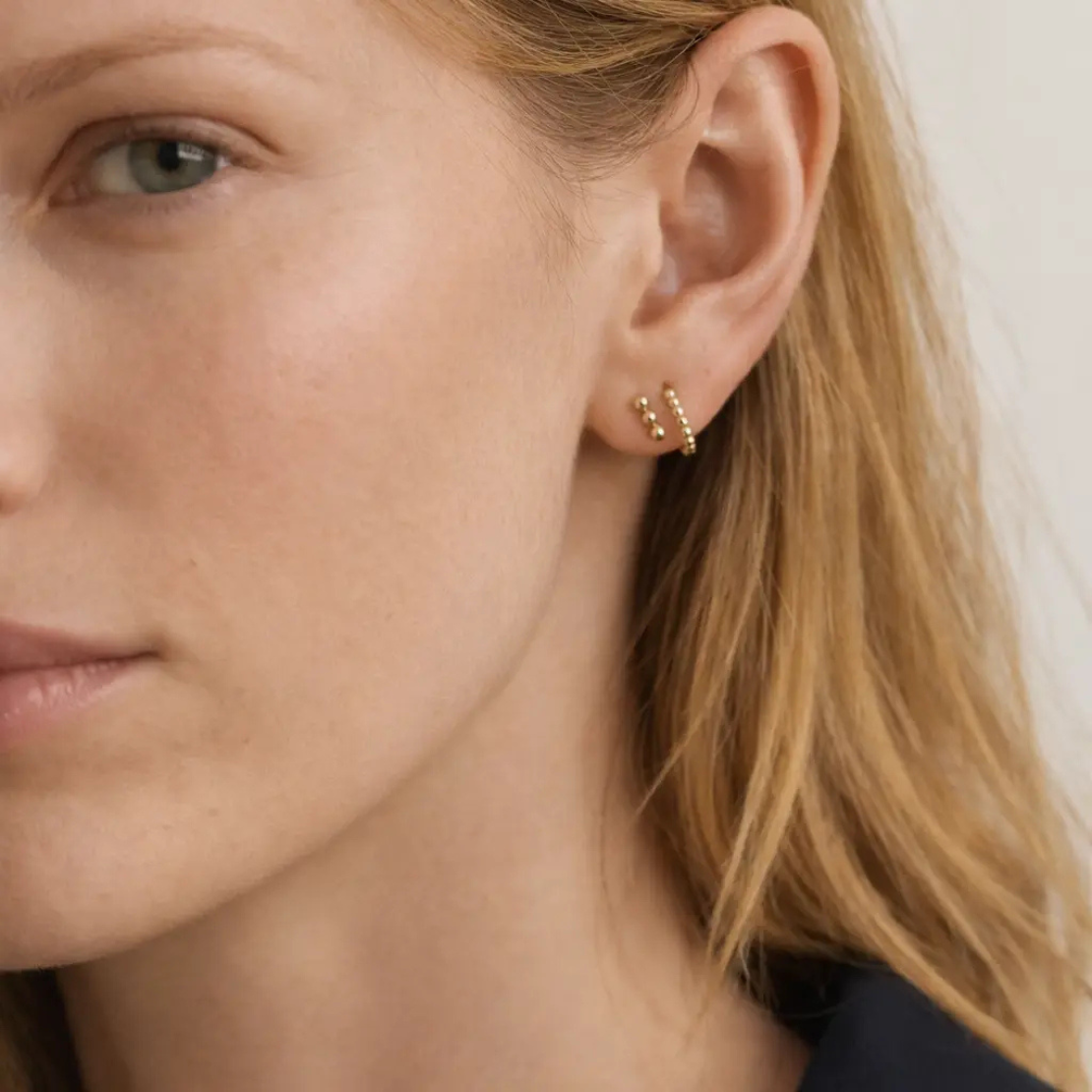 Delicately crafted with tiny dots, the Lily Dot Bar Studs are the epitome of minimalist elegance. Designed to update your everyday style, these studs offer a timeless touch that works effortlessly with any look. Perfect for adding to an ear stack, they are an essential for anyone with multiple piercings. Lightweight, versatile, and crafted to last, these studs are an elevated addition to your jewelry collection.