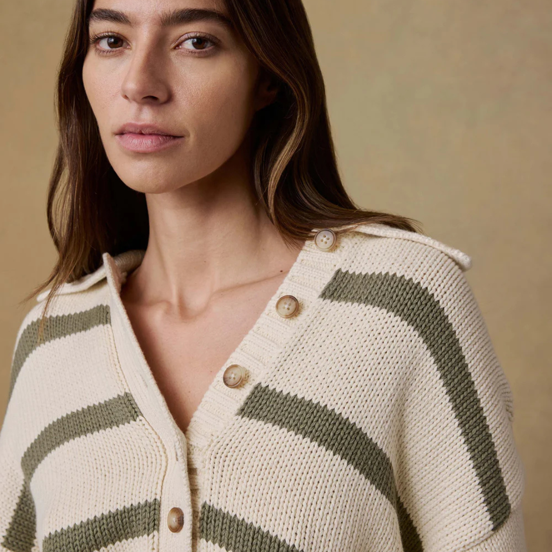 A timeless staple, this cotton polo sweater features a refined collar and an easy, relaxed fit. The midweight knit delivers just the right warmth, while the sun-washed hues add that fresh, just-back-from-vacation vibe. Effortless, versatile, and ready for anything on your calendar.
