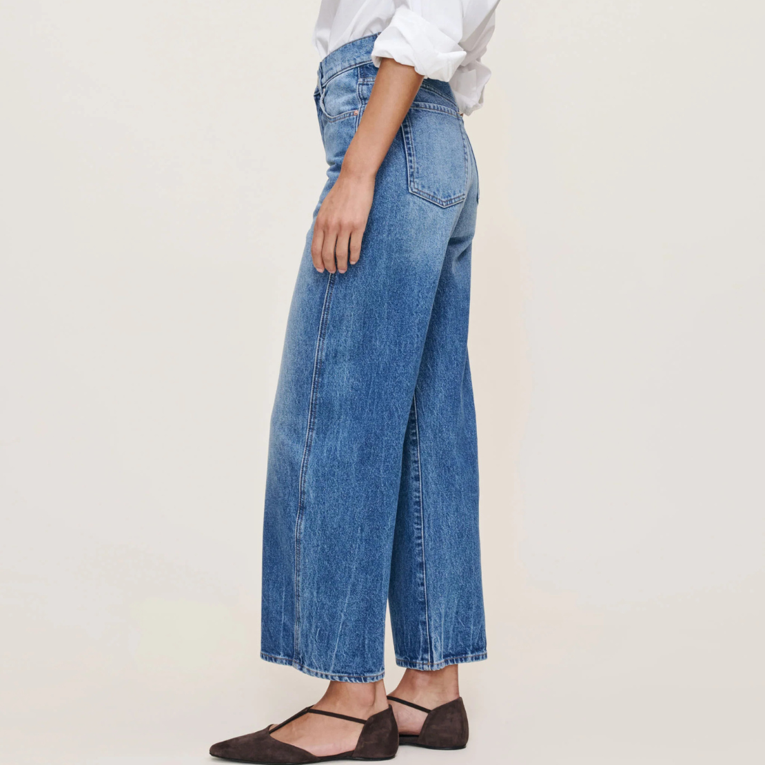 Taylor is a high rise fit with a relaxed barrel leg for an everyday, laid-back look. North Water is a mid-to-light indigo wash with authentic character. It features a silver shank, copper rivets, khaki stitching, a clean hem and a brown back patch. Our family owned facilities have partnered with Recover to produce certified and traceable recycled fiber fabrications, transforming textile waste into sustainable fibers to further our commitment to the environment and closing the loop on fashion.