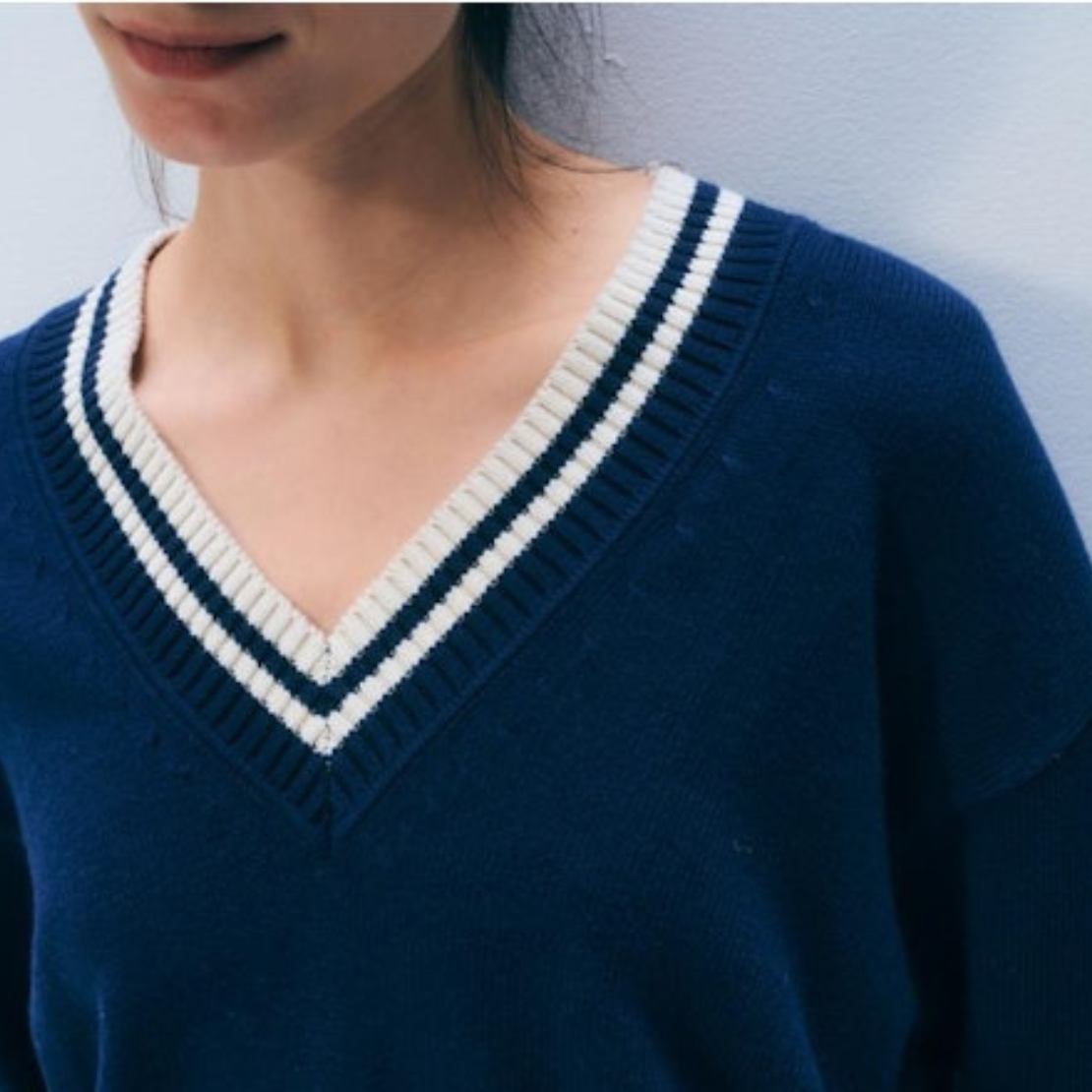 A varsity-inspired V neck featuring wide ribbing and contrast trim for a classic, collegiate feel. Spun from 100% cotton in a classic weight.